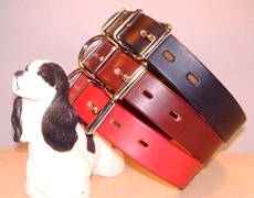 馬具職人が伝統の技で一本一本作り上げた多脂牛革製高級首輪。ワインレッド、黒、茶の三色です。